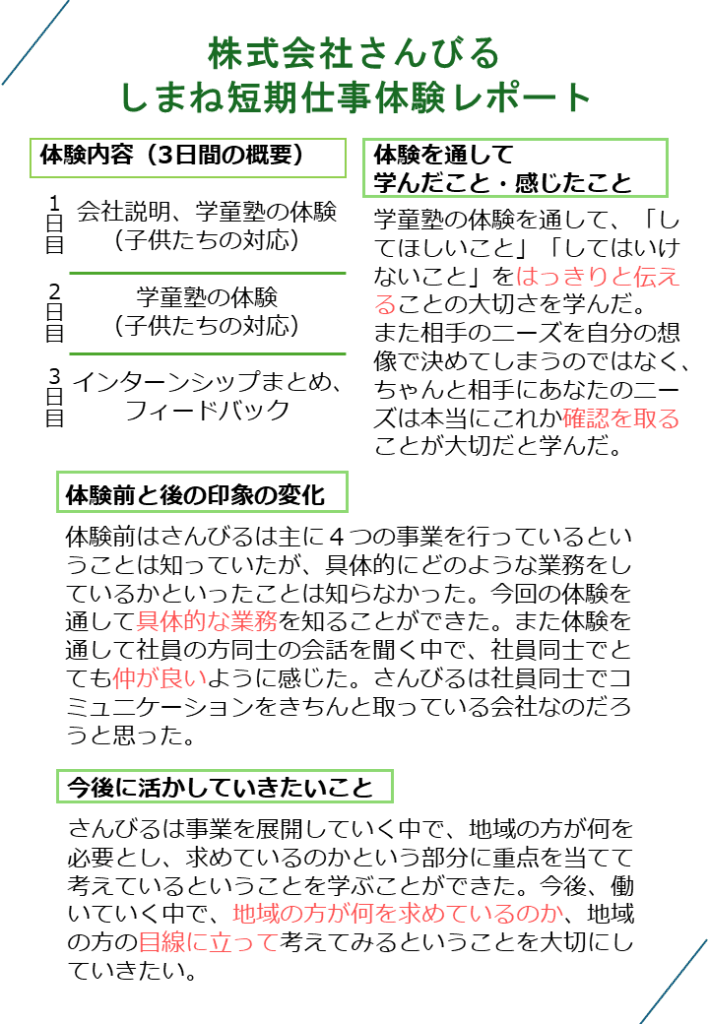 実際の仕事を体験したり、見学をしたり、社員との交流をしたりするのでさんびるで働くイメージを持てます☺️