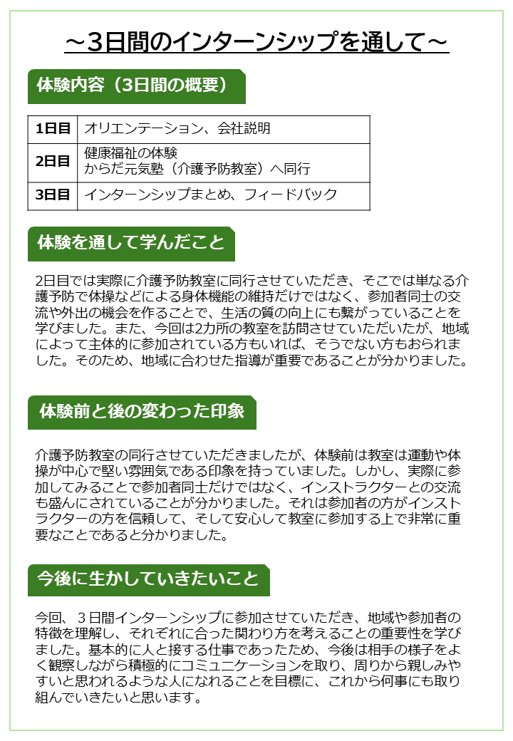 そんなインターンシップ、仕事体験を通して、